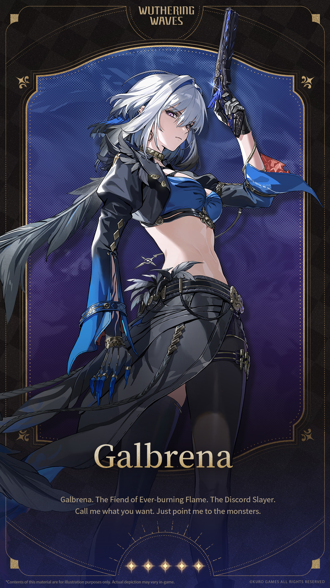 Cold and decisive, she is the "Discord Slayer" who hunts across Solaris and the same "Fiend of Ever-burning Flame" spoken of in whispers.