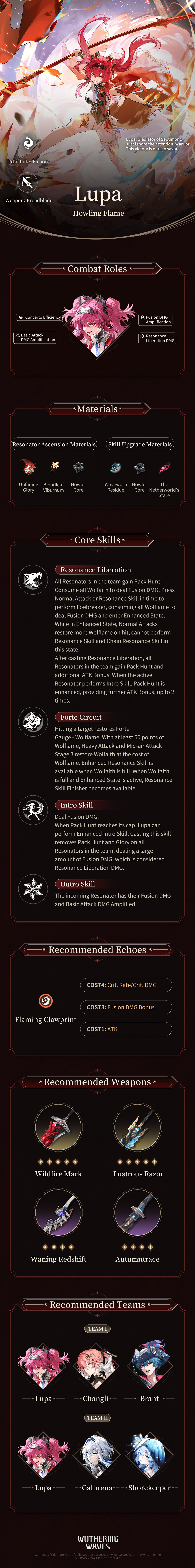 ++ Fiery and straightforward, Lupa lives like a wild lone wolf. As long as she can savor the adrenaline rush of battle, she doesn't mind if that same fire ends up consuming her whole. +