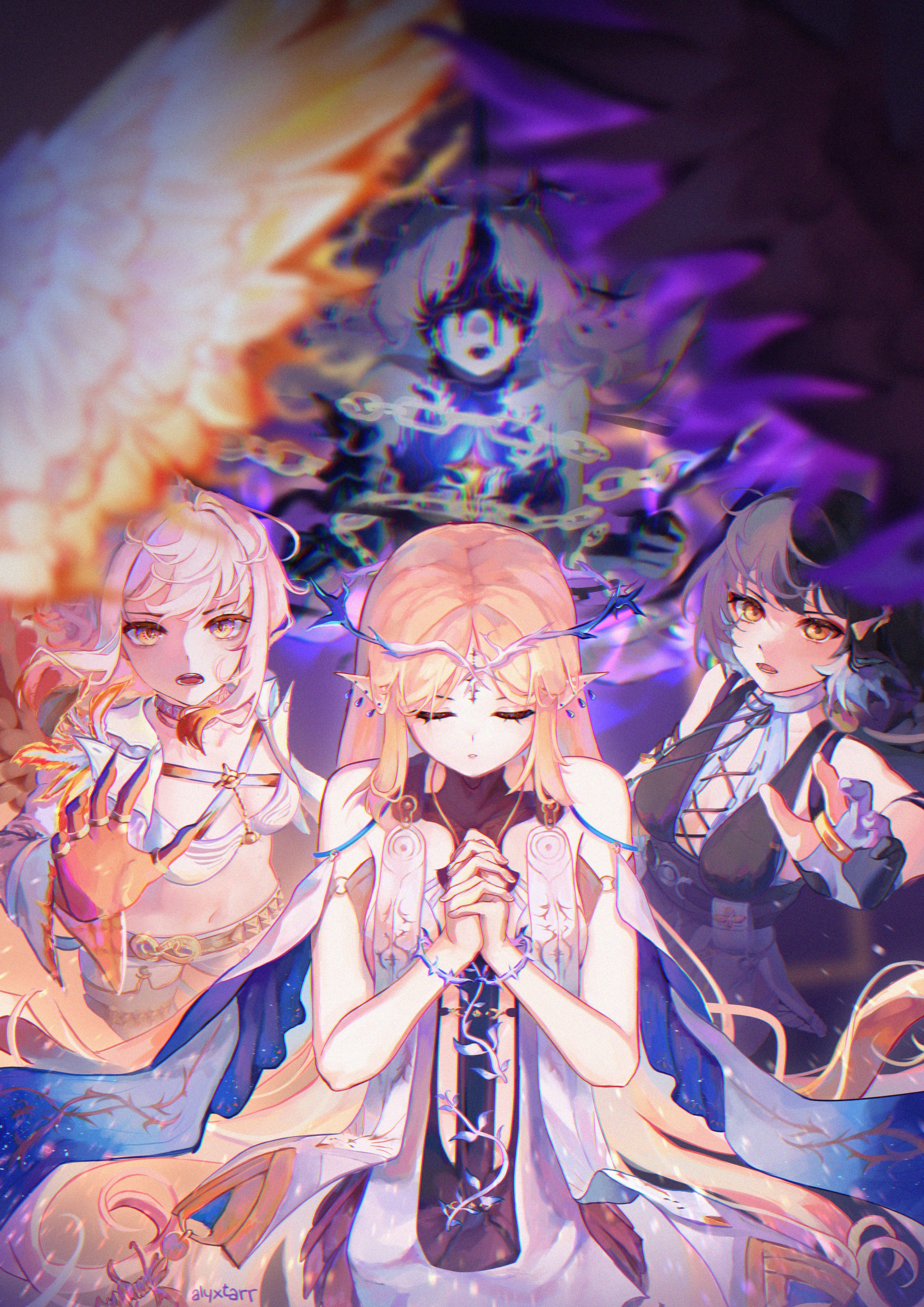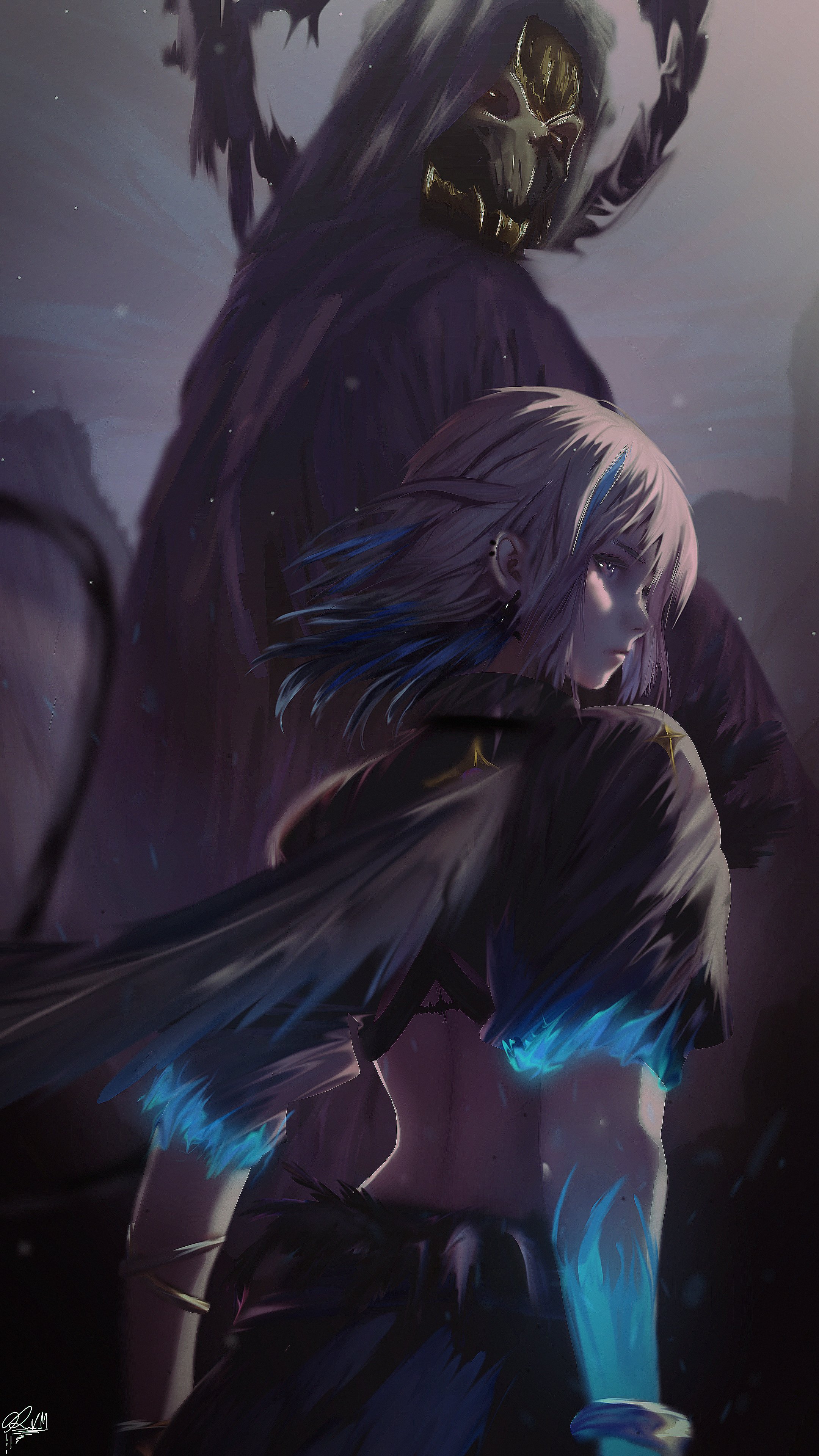 Calmly, she introduces herself, a faint iridescent shimmer flickering in her eyes. Again, the structures of the world reveal themselves in her vision. Narrowing her eyes, she singles out the very thread that tugs at life itself.